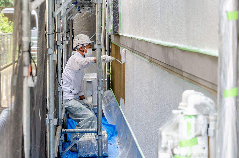 塗料の種類選択については、立地等さまざまな条件を考慮します。外壁や屋根塗装ではシリコン塗料やフッ素塗料を使う場合が多いですが、アクリルやウレタン塗料等も含め決定致します。